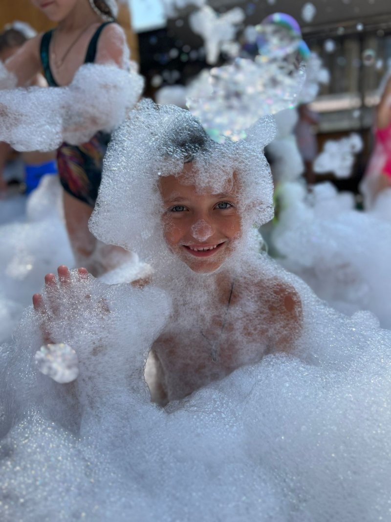 Дети наших гостей находятся в полной безопасности в закрытой игровой зоне на свежем морском воздухе. На ее территории расположен 3-уровневый лабиринт, веранда для проведения мастер-классов и площадка для пенных дискотек.