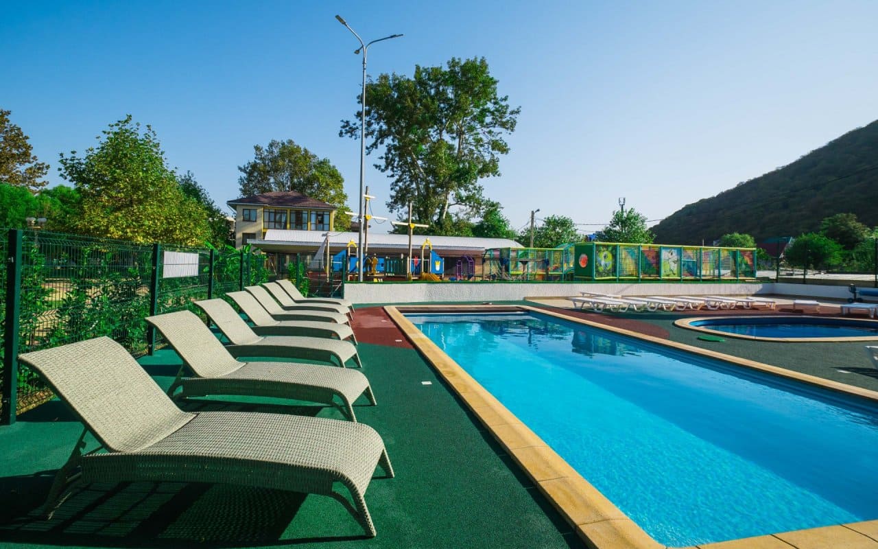 На территории нашего спа-центра в корпусе «Камчатка» есть два подогреваемых бассейна (взрослый и детский), где можно освежиться после тепловых процедур. Вода в них всегда теплая — не отказывайте себе в удовольствии в любую погоду. У бассейнов установлены удобные шезлонги — расслабляйтесь и наслаждайтесь солнцем в размеренном ритме.