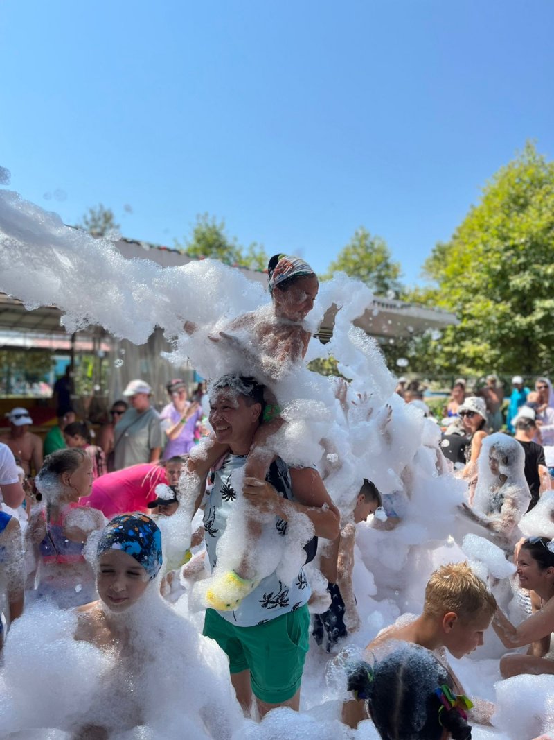 Дети наших гостей находятся в полной безопасности в закрытой игровой зоне на свежем морском воздухе. На ее территории расположен 3-уровневый лабиринт, веранда для проведения мастер-классов и площадка для пенных дискотек.