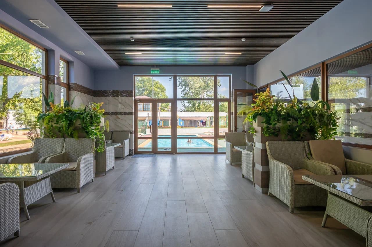 В спа-центре в корпусе «Камчатка» из зоны отдыха и релакса можно выйти к двум открытым подогреваемым бассейнам и ледяной купели.